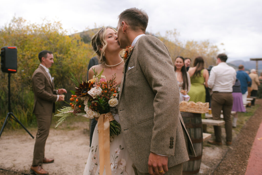 What makes Steel Horse special is how it’s laid out. The rustic barn that doesn’t feel overdone. The vintage railcar that is so unique. The ceremony site with actual mountain panoramas, not just “mountains in the distance if you crop out the parking lot.”